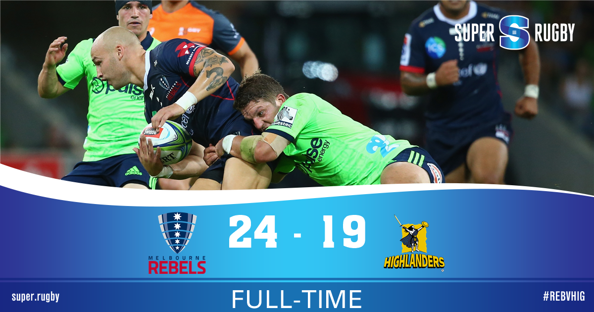 Trailing by five, the Highlanders threw everything at a staunch Rebels defence, even getting across the line but the ball was judged to have been knocked on by the television match official. With just seconds left, the Rebels hung on and hoofed the ball out at the hooter to celebrate their second consecutive win of the season.
