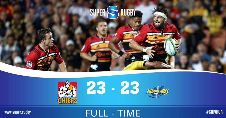 The New Zealand Super Rugby derby saw plenty big hits and some thrilling running rugby but the Chiefs and Hurricanes played to a 23-all draw on Friday.